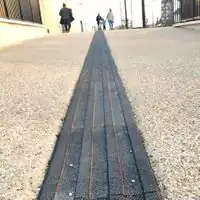 | Idéal pour les mal-voyants. | Chemins guidants se croisant. | Interruption partielle de la bande. |