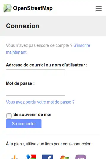| Se connecter | Utilisation de son compte OpenStreetMap |