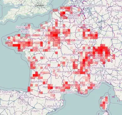 Répartition des zones impactées par le rédaction bot au 31 mars 2013[1]
