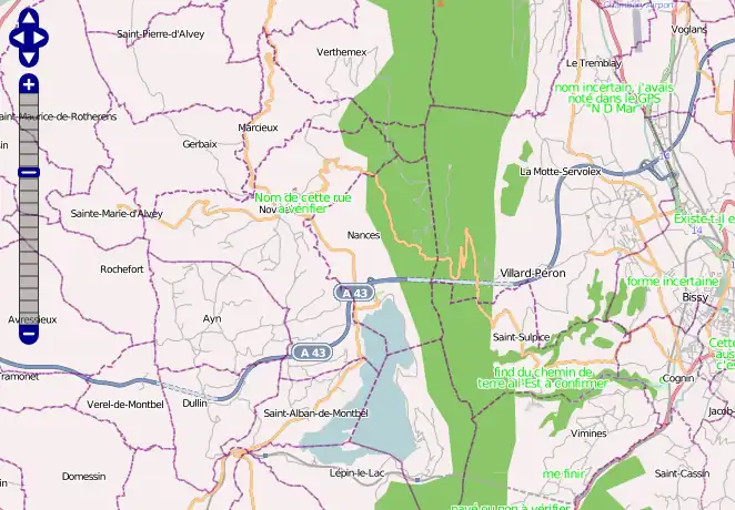 - Il fournit des calques pour les rues/routes/chemins n'ayant pas encore de nom, pas de numéro de référence, pas de sens unique indiqué ; et il signale la présence d'attributs textuels contenant des éléments à corriger (FIXME) ou des notes (destinées à éviter d'introduire des erreurs en essayant de corriger à tord certains signalement automatiques ou des éléments inhabituels ou essentiels à conserver en l'état) ; et des calques qui montre l'étendue en surface des frontières administrative niveau par niveau.