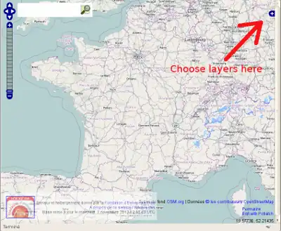 - Le fond de carte de carte (sélectionnable) change et est rafraichi en continu d'après les données OSM.