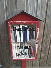 - Little Free Library (petite bibliothèque publique), un projet qui a aidé à publiciser le mouvement des boîtes à livres.