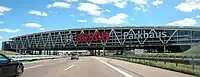 Tracez la zone du bâtiment, marquez la forme avec building=bridge et appliquez layer=* à la structure (typiquement layer=1).