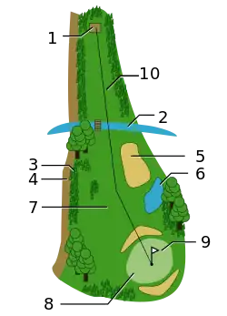 Le "trou" est représenté par un chemin qui va du tee jusqu'au drapeau | 10 | |