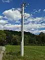 power=line. - Pour cartographier les lignes plus modestes, principalement du réseau de distribution exploitée à des tensions généralement inférieures à 45 kV, habituellement supportées par des poteaux, voir