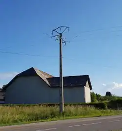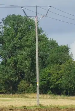 | Un poteau simple supportant des lignes électriques de toute tension. Ce sont le plus souvent des mats armés pour supporter des isolateurs séparant la ligne électrique de la terre. |