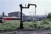 prise d'eau (appelée aussi grue à eau, grue hydraulique ou manche à eau) est un élément utilisé pour fournir un grand volume d'eau à une locomotive à vapeur.