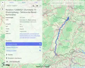 - If a section is shown as separate despite not being a variant or excursion of the route, this indicates a mapping error. Zoom to the ends of the section to see how the sections are not connected. You can open the map position on OpenStreetMap by clicking “Map style” and then “OpenStreetMap”. (Pro tip: Enable the “OpenStreetMap Editor” map style link in the user preferences to jump straight into the editor.)