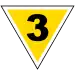 Kolmion muotoinen keltainen merkki, jossa on valkoinen reunus ja musta numero.