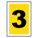 Suorakaiteen muotoinen keltainen merkki, jossa on valkoinen reunus ja musta numero.