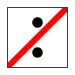 Siirtyminen näkemäajosta opastimilla ajoon. Neliönmuotoinen valkoinen kyltti, jossa on kaksi mustaa pistettä peräkkäin.