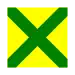 Neliönmuotoinen keltainen merkki, jossa on vihreä vino risti.