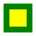 Keltainen neliönmuotoinen merkki, jossa on vihreä reunus.