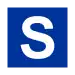 Merkki osoittaa opastimen silmukkailmaisimen sijainnin. Suorakaiteen muotoinen sininen merkki, jossa on valkoinen S-kirjain.