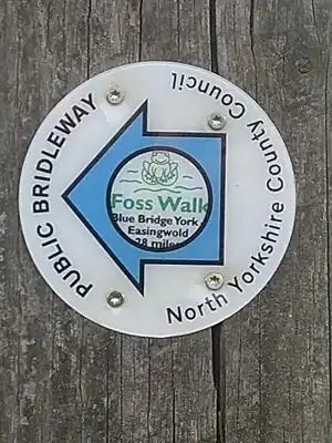 The Foss Walk (or as the pictures on some of the signposts call it, the Foss Way) runs alongside the River Foss from its confluence with the Ouse at Blue Bridge to its source near Easingwold.