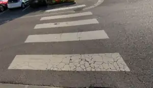 le marquage est tellement effacé qu'on n'est pas bien certain qu'il y ait vraiment un passage piéton ici |