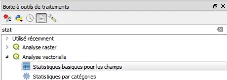 Dans la boite à outils, sélectionnez analyse vectorielle/statistiques basiques pour les champs :