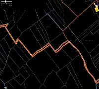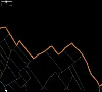 Proposition 2Un nouveau way doit être superposé à la rivière ou route en réutilisant les mêmes nœuds sur toute la portion de la limite administrative. Ce nouveau chemin superposé sera ensuite découpé en autant de morceaux que nécessaire pour être ensuite ajoutés aux relations. Seul le nouveau way superposé comporte les tags |