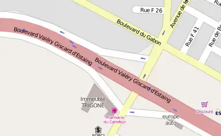 Frontage road (with highway=secondary) on a trunk major road