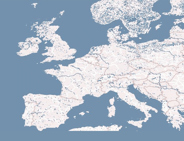 Created mid-2007 this was an early rendering system producing low-zoom simple coverage renderings from a MySQL database. Here's an example of Europe (the animation may only be visible after you click on the image and load the full-size version):