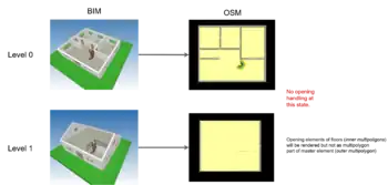 - Internal data structure holding IFC data will be converted to OSM objects (using defined translation schema)