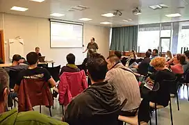 Conférence de deux heures et demie OpenStreetMap et Open data pour les Master 2 Réseaux Informatiques et Communication Multimédia (RICM) de Polytech Grenoble, à l'invitation de Renaud Blanch, enseignant-chercheur.