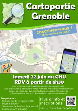 Le groupe local de Grenoble d'OpenStreetmap organise le premier atelier après les vacances d'été : lundi 17 septembre à 18h30
