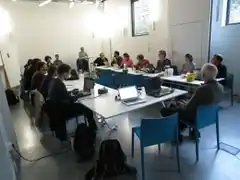 Après le tour de table habituel et l'explication du fonctionnement du groupe local, on s'est répartis en petits groupes pour que les anciens expliquent aux nouveaux les outils de contribution.