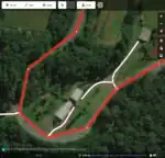 vias em meio urbano ou estradas que passam por zona urbanaem regiões rurais (vilarejos, etc), seria conveniente ter uma precisão de desenho de modo aassegurar-se que o traçado da via NÃO corte construçõese seus terrenos imediatos, que se mantenha dentro dos limites da "caixa" da via, seguindo o desenho o mais próximo do eixo da via, dentro do que permite a resolução da imagem. Nestes casos, é conveniente "aproximar o zoom".