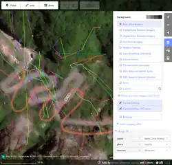 - desenhar remotamente sobre materiais disponibilizados no OSM por terceiros (como imagens de satélite, mapas, fotos e/ou traçados de GPS).