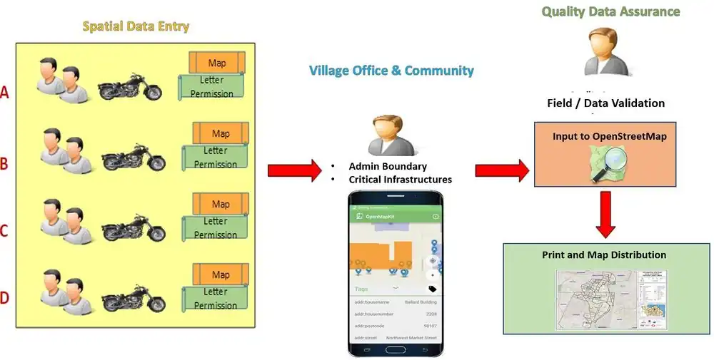 - Assessment with existing data in OpenStreetMap and the local government such as boundary administrative as a initial map and information for the mapping and survey activity.