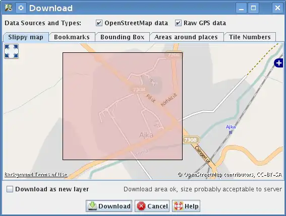 A JOSM-ban való szerkesztéshez először le kell tölteni a szerkesztendő terület meglévő térképét és a feltöltött GPS nyomvonalakat: