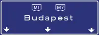 Tábla az autópálya kijárata után (Lehajtó utáni kereszteződésben) | |