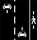 - jelzőtáblával gyalogútként megjelölt út, illetőleg olyan út, amely kizárólag a gyalogosok közlekedésére szolgál és az úttesttől tartós fizikai akadály (árok, korlát, kerítés, sövény, stb.) vagy két méternél nagyobb távolság választja el. -- KRESZ 2. § (1) bekezdés o) pont