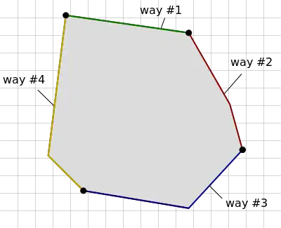 • ezen vonalaknak egy érvényes (angolul valid, ejtsd: /ˈvæl.ɪd/) elrendeződésben állva gyűrűket kell alkotniuk, hogy szabályos multipoligont tudjunk belőlük létrehozni.