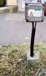 Korrózióvédelmi berendezés: karóba húzott fémdoboz