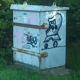 Előfordul még: material=metal. Ebben általában megtalálható egy elzáró-szerelvény vagy különleges esetben belterületen süllyesztett nyomásszabályozó állomás. Négy sarkában gyakran 1-1 betonoszlop található a specifikáció szerint is.