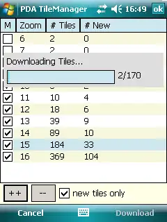 PDA TileManager è un programma che scarica i tiles delle mappe OSM da usare con Run.GPS e OSMtrack, lungo il percorso di una traccia GPX data. E' possibile scegliere tra Mapnik, Osmarender e Cyclemap e tra i livelli di zom disponibili. Richiede l' installazione di .NET CF 2.0 o superiore. .