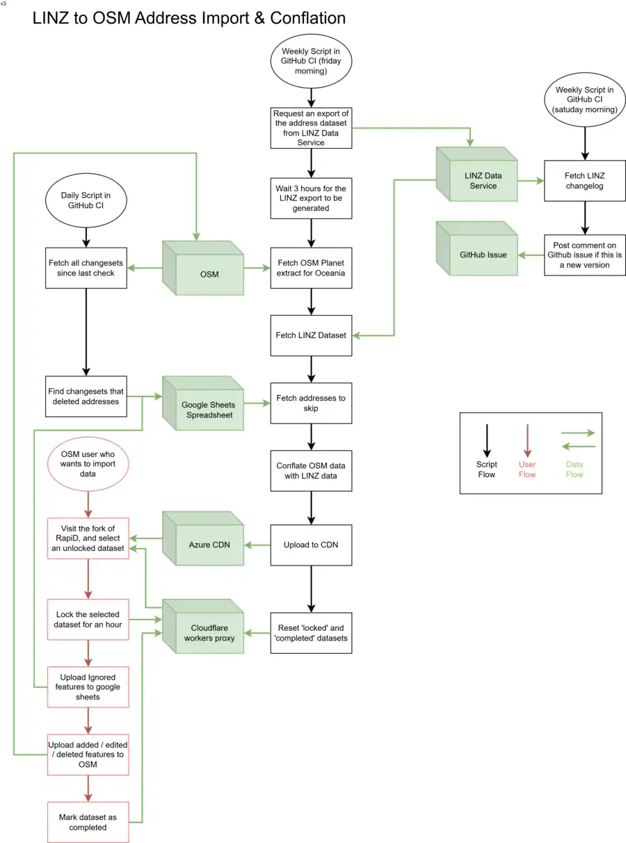 - To set up a system that is simple and efficient, which allows OSM street address data to be regularly conflated with LINZ's data