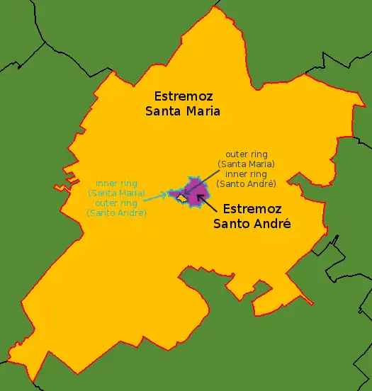 A freguesia de Estremoz (Santa Maria) no concelho de Estremoz distrito de Évora, caso único em Portugal, esta freguesia tem um enclave a freguesia de Estremoz (Santo André) que tem ele mesmo um enclave que funciona como exclave da freguesia de Estremoz (Santa Maria) :