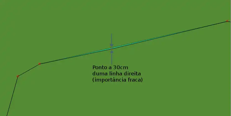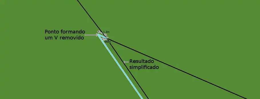 O método de simplificação é baseado num Douglas-Peucker com uma pequena diferença : os pontos que introduzam uma diferença de ângulo >40° são considerados significativos e são de facto guardados. Foi considerado que um ponto não é significativo se, quando removido, fica a menos de dois metros da linha traçado sem ele. Qualquer que seja o ângulo, um ponto é sempre removido se ele fica situado a menos de 30cm da linha traçado sem ele.