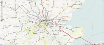 | 鉄道トラックや道路上で、乗り物に電気を供給するためのインフラを示します。 |