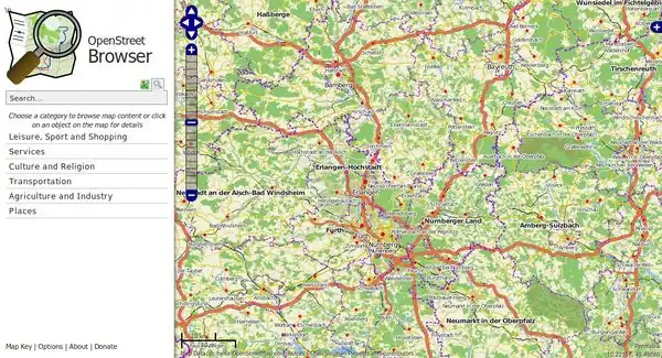 OpenStreetBrowser は地図の表示された部分の情報を'ブラウズ'するアプリケーションです。プロジェクトの目的はあらゆるマップされた地物をユーザが簡単に利用できるようにするための高度にダイナミックなマップを提供することです。全世界をカバーし、(ほぼ)最新のデータベースを提供します。