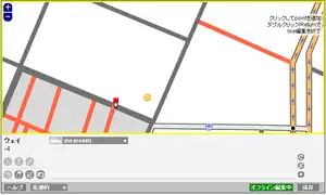 - 今までに削除されたウェイが赤い線(ロック状態)で表示されます。ロックされたウェイはサーバーには記録されていません。