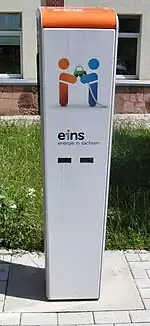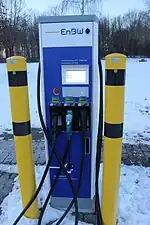| 充電スタンド。電気自動車を充電できる場所。 |