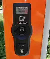 アメリカ合衆国のテスラスーパーチャージャー8台がある場所の例。 ![]() ソケットはアメリカ合衆国の普通の給油機と同じように、支払いカードを使う前に取り上げることができます。 |
