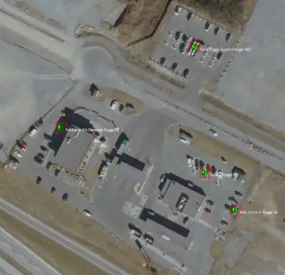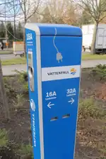 それぞれ別種のソケットがついた3台の充電器がある充電スタンドの例。 ノードとして、または充電器と駐車区画を囲む閉じたウェイとしてマッピングします。 OSMにおけるこのスタンドへのリンク: Recharge Vigra charging station |
