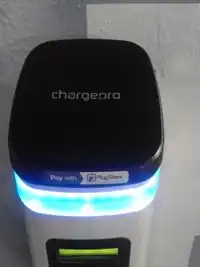 The socket is attached to a coiled hose on the front of the charging station:![]() Like a regular US gas pump, the connector can be picked up before using your payment card. |