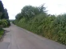 | 生垣。区域の境界の目印や障害物として、低木や木の類が間隔を詰めて並べられたものです。 |