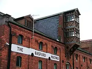 元は麦芽製造所として建てられ、大学の学生用アパートに転用されました。一般的な building=industrial を使用するか用途を特定する building=maltings とします。